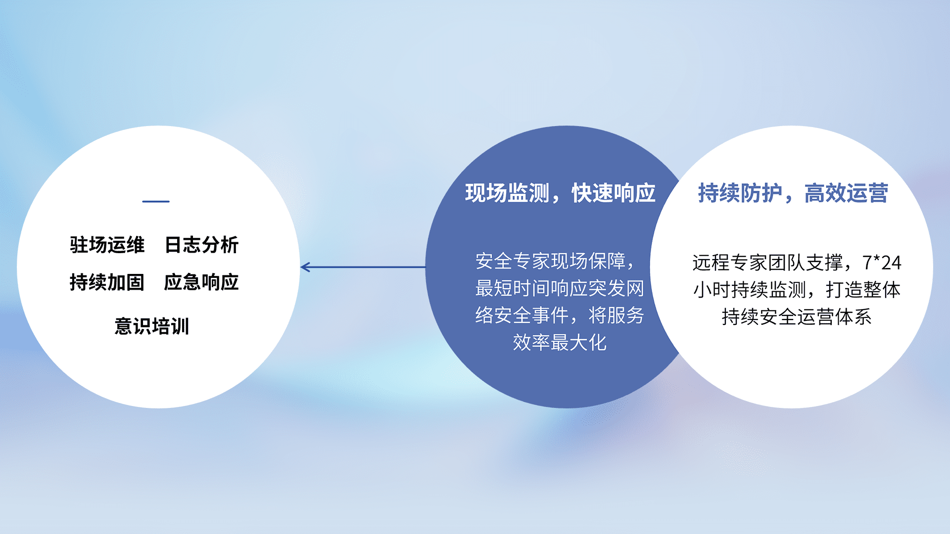 7X24小时持续监测安全事件,保持安全策略有效性,降低资产脆弱性风险,,,,精准拦截黑客攻击,,,,减少被黑客利用的机会,,,,第一时间遏制,,,,降低损失。。